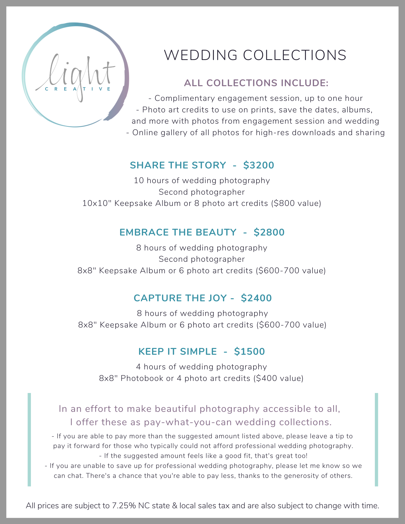 Wedding Collections I aim to capture your joyful moments and create tangible photo art for you & your family to enjoy for generations to come. Here’s our current wedding collections guide! View fullsize Each collection includes a keepsake wedding album or photobook for you to enjoy your memories. If you’d rather select different […]